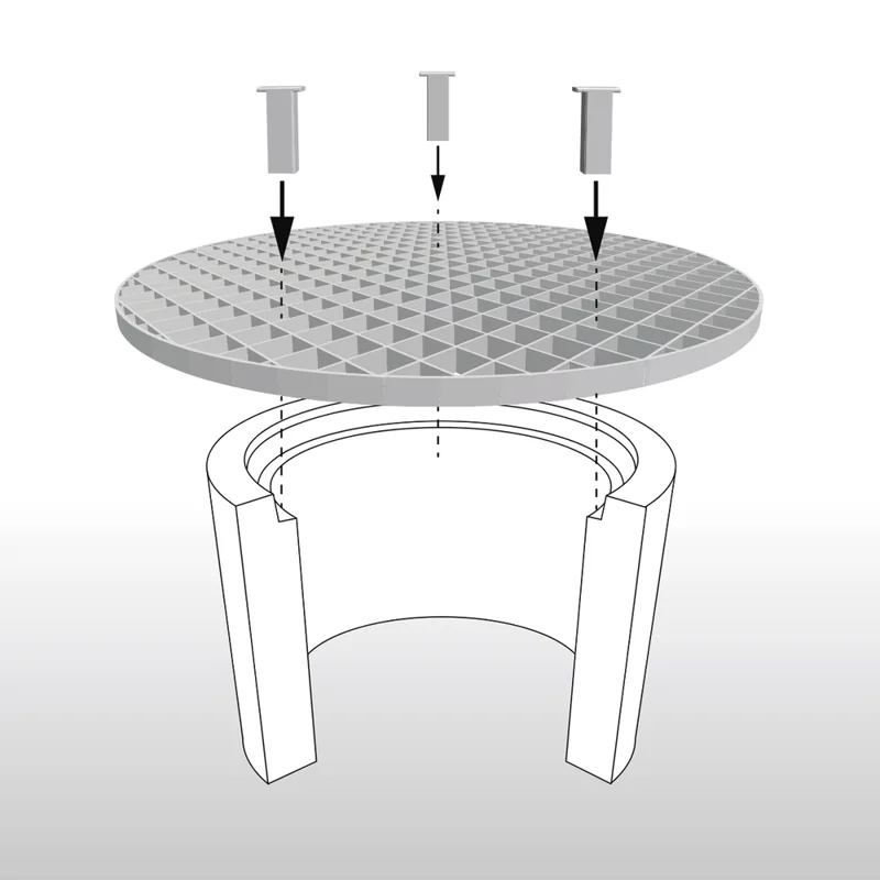 - für kleine Schächte ist eine 3-Punktfixierung erhältlich, sie hält das Gitter an Ort und Stelle.